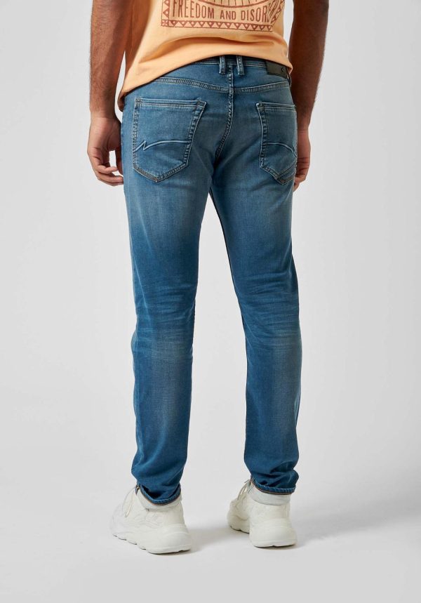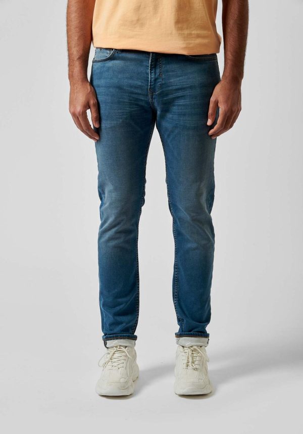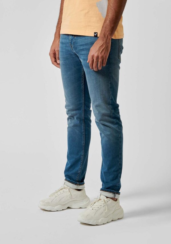 Le Daxko est notre denim coupe slim, taille normale, avec jambes légèrement moulantes.